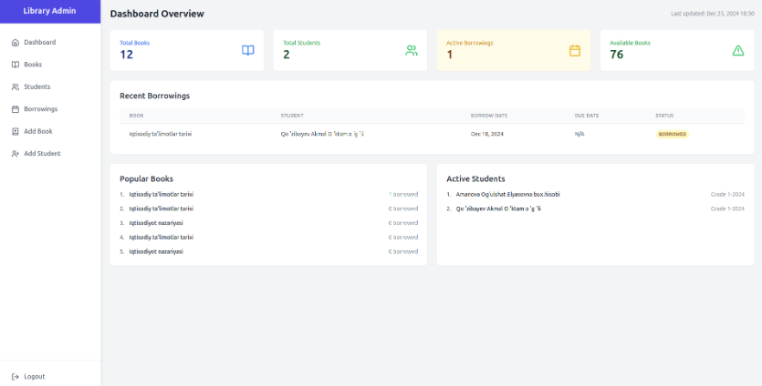 A modern library management system built with Next.js (App Router), Prisma, and JWT authentication. This open-source project provides an efficient way to manage books, students, and borrowings. Used GitHub Actions for CI/CD (automatic deployment).